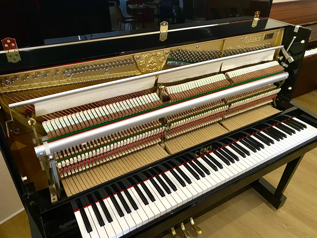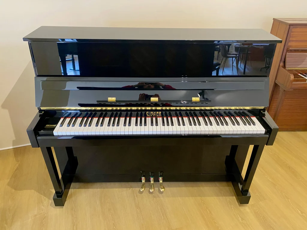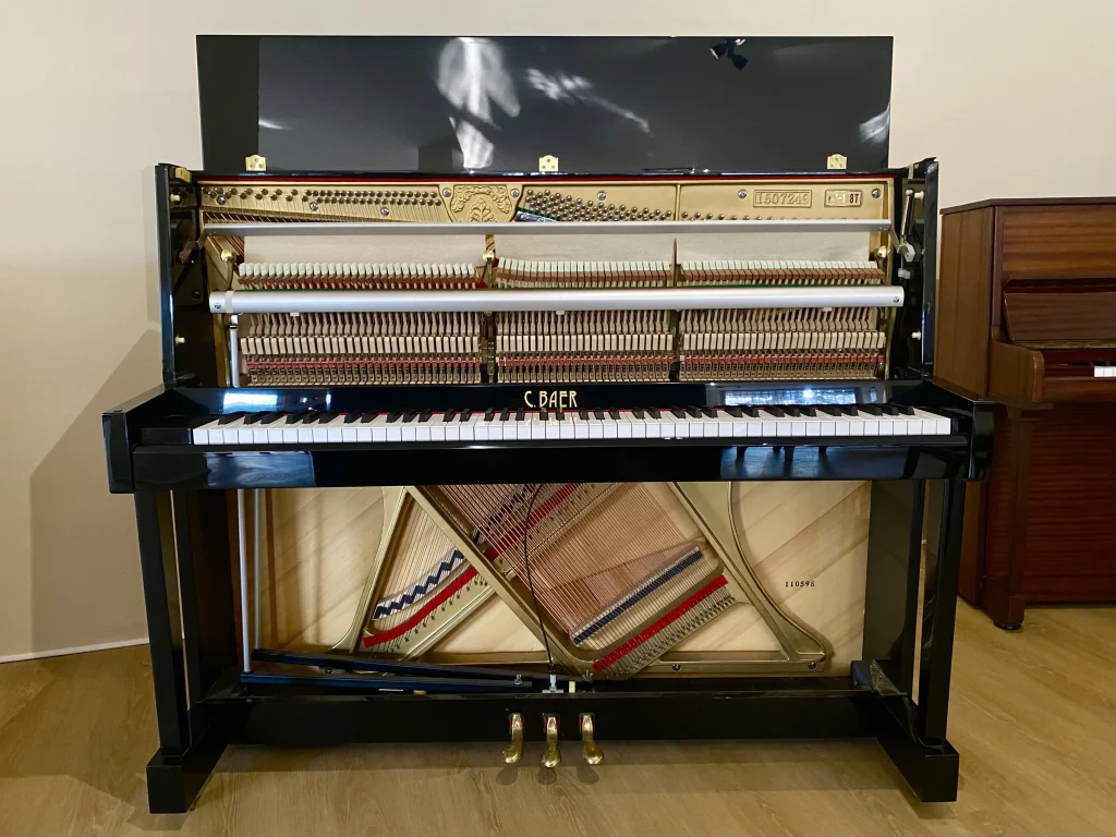 Eleganza classica e sonorità equilibrata caratterizzano questo pianoforte verticale C. Baer 118, uno strumento ideale sia per studenti che per pianisti più esperti alla ricerca di un pianoforte affidabile e raffinato.