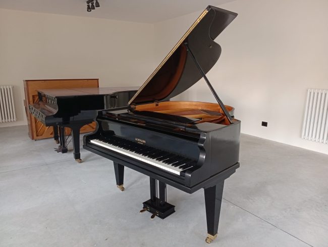 Hofmann 150 nero lucido Specifiche Marca: Hofmann Modello: 150 Anno: 1930 Provenienza: Svizzera Misure: N.D. Prezzo affitto: N.D. Prezzo acquisto: 7.000€ Descrizione Pianoforte a coda H. Hofmann 150, di produzione tedesca, costruito intorno al 1930. Con una lunghezza di circa 150 cm, è uno strumento compatto ma progettato secondo criteri costruttivi solidi e tradizionali. Il…