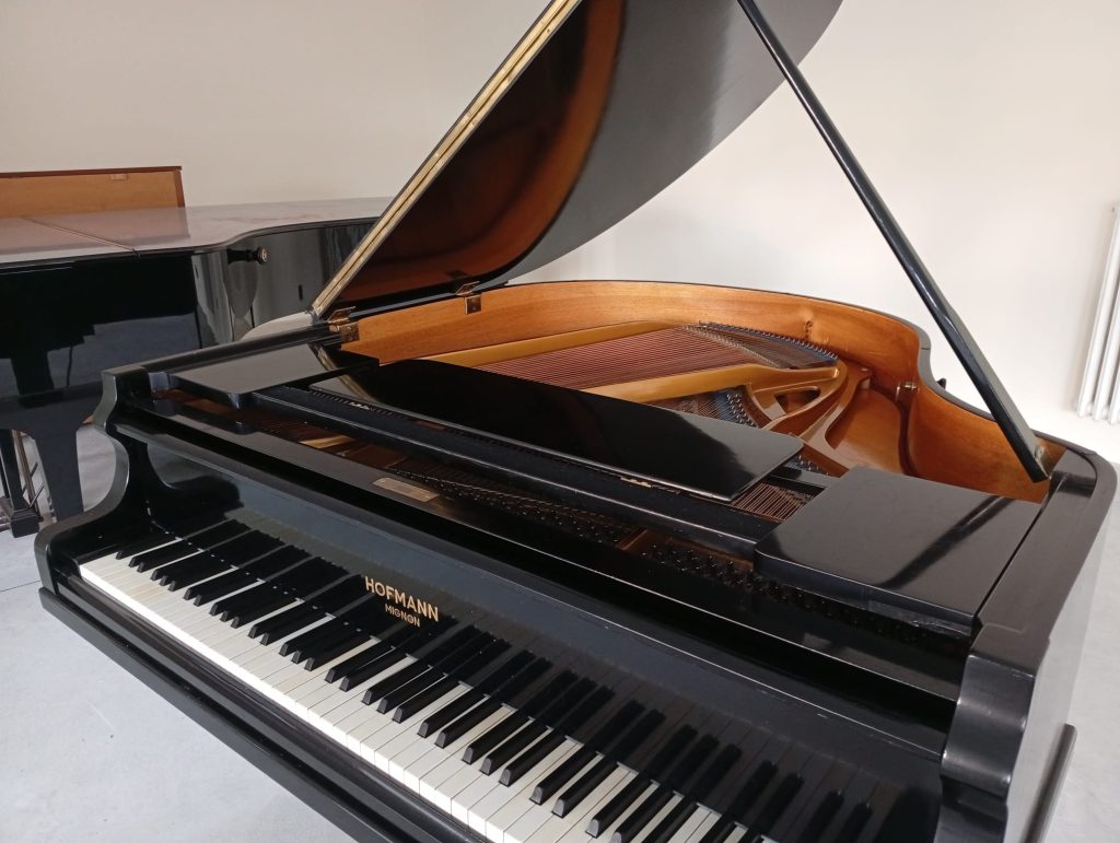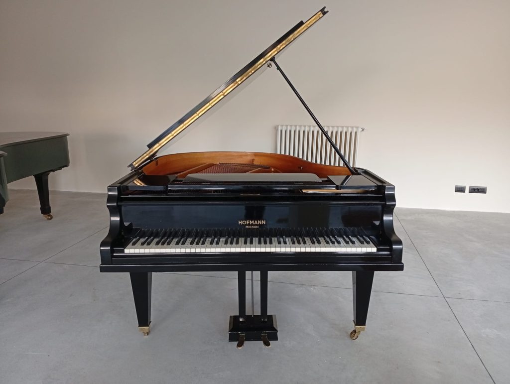 Pianoforte a coda H. Hofmann 150, di produzione tedesca, costruito intorno al 1930. Con una lunghezza di circa 150 cm, è uno strumento compatto ma progettato secondo criteri costruttivi solidi e tradizionali.