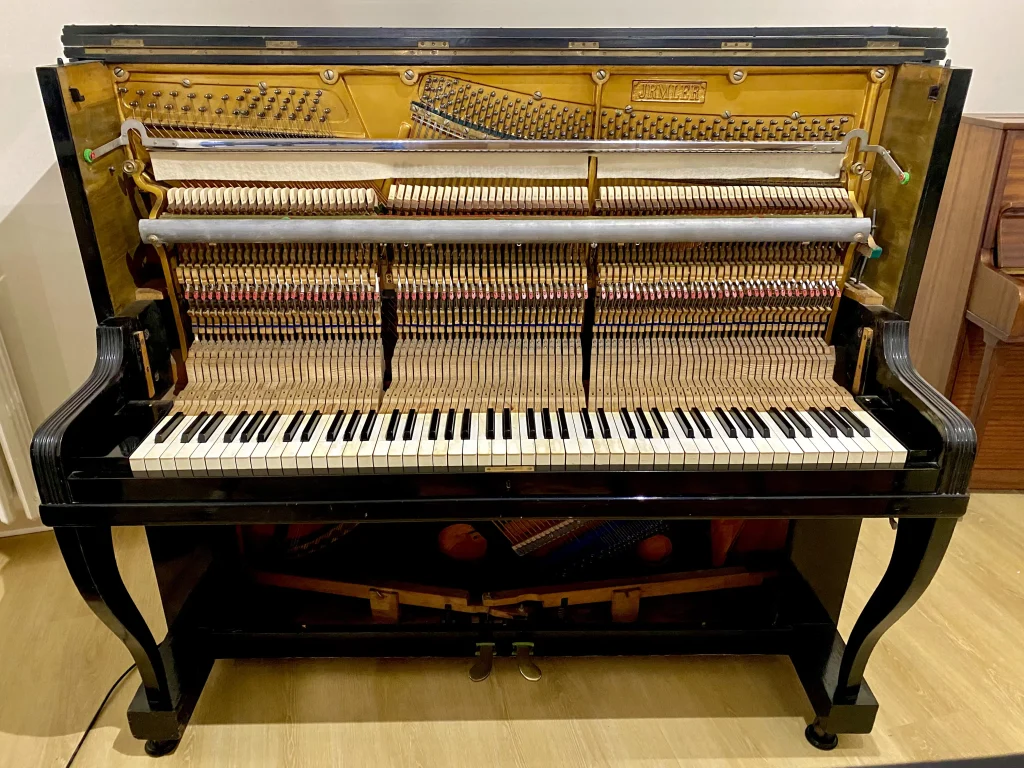 Questo raffinato pianoforte verticale Jrmler 130 rappresenta un autentico esempio della tradizione pianistica europea dei primi del Novecento. Realizzato con la cura artigianale tipica dell’epoca, lo strumento unisce eleganza estetica, solidità costruttiva e un carattere sonoro caldo e profondo.